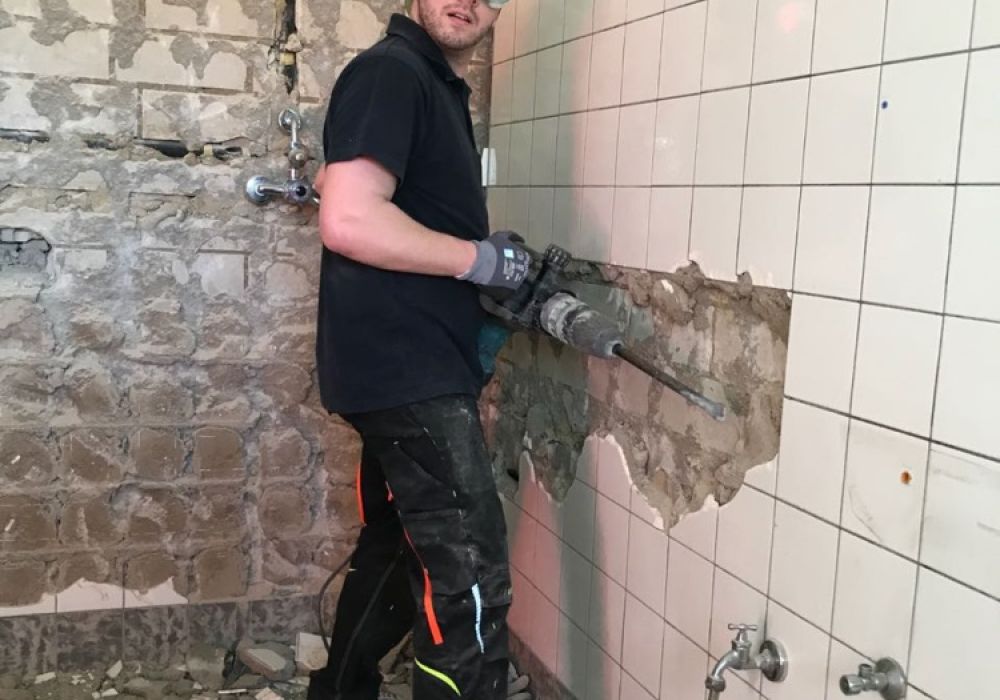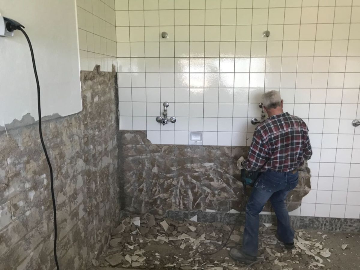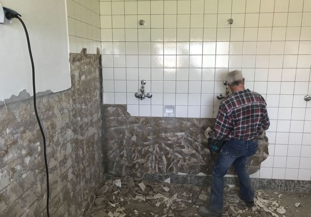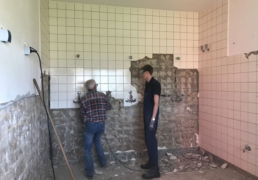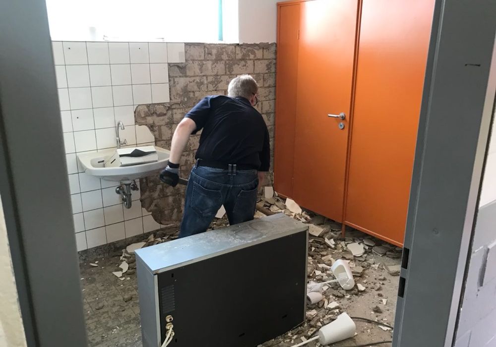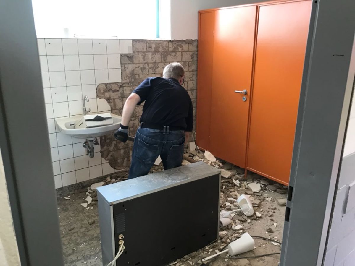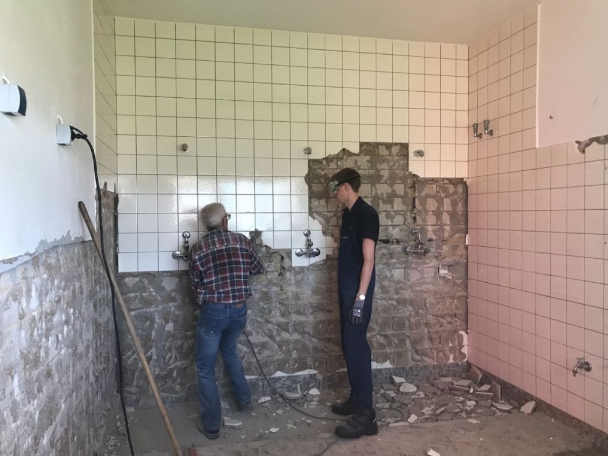 Die Maßnahmen in Eigenleistung gehen weiter. Heute begannen die Kameraden des LZ Bohl damit Fliesen in Dusche und WC zu entfernen.