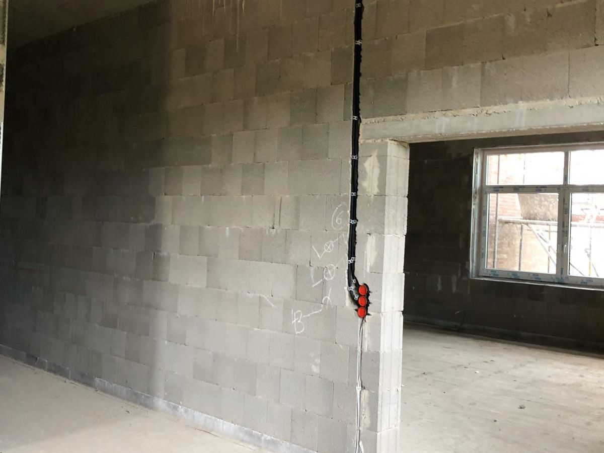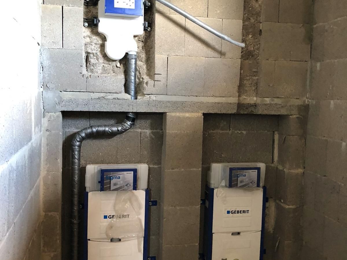 Dach und Fassade sind im Wesentlichen geschlossen, jetzt können die Ausbaugewerke wie Sanitärinstallateur und Elektriker im Gebäude fleißig werden.