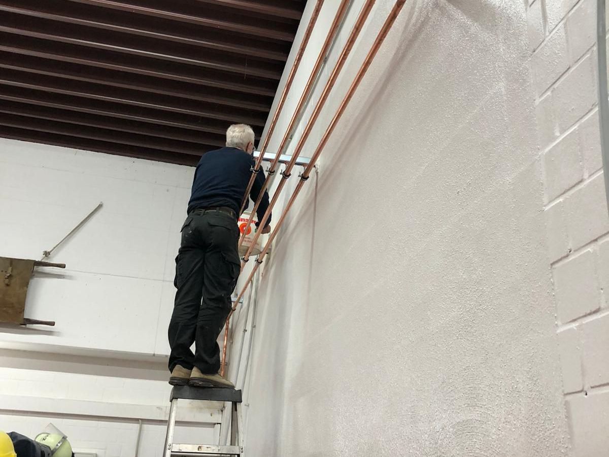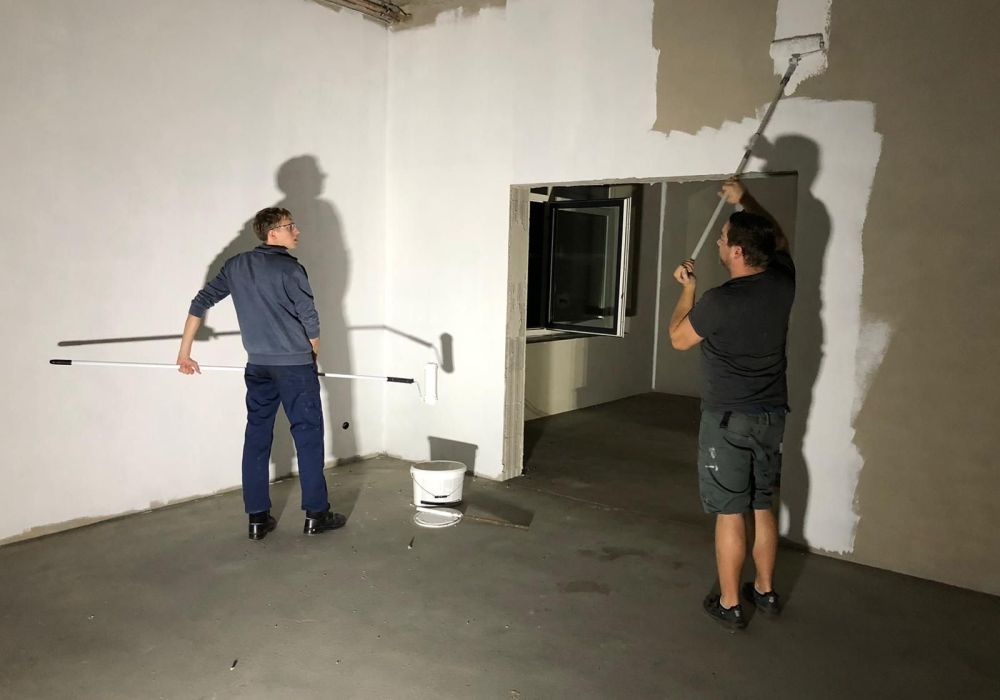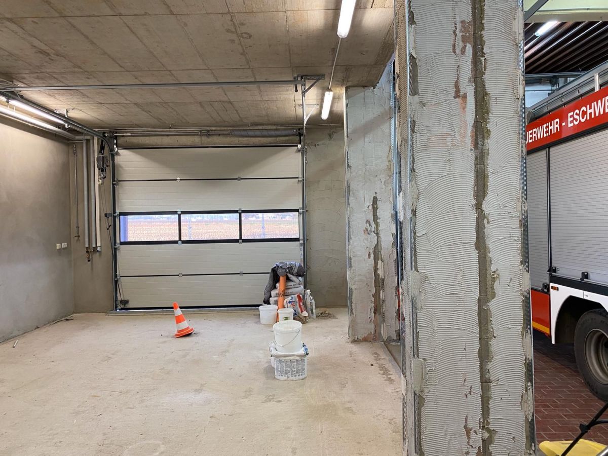 Die Rohinstallationen sind erfolgt, der Putz ist aufgetragen. Nun kommt die Zeit für Eigenleistungen. Die Mitglieder des Löschzuges 42 verbringen nun viel Zeit im Gerätehaus und übernehmen Maler- und Trockenbauarbeiten. Hierdurch kann einiges an Handwerkerkosten eingespart werden, so dass die Erweiterung in dieser Form tatsächlich umgesetzt werden kann.