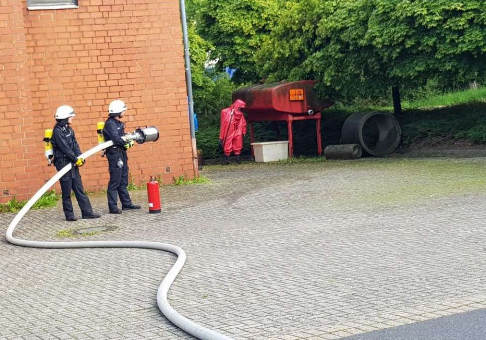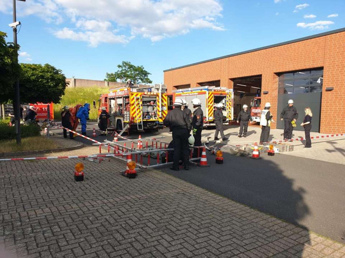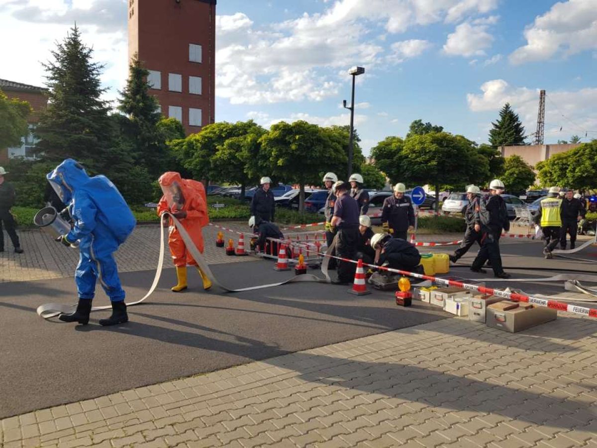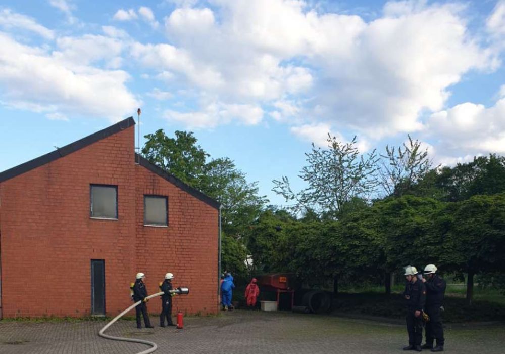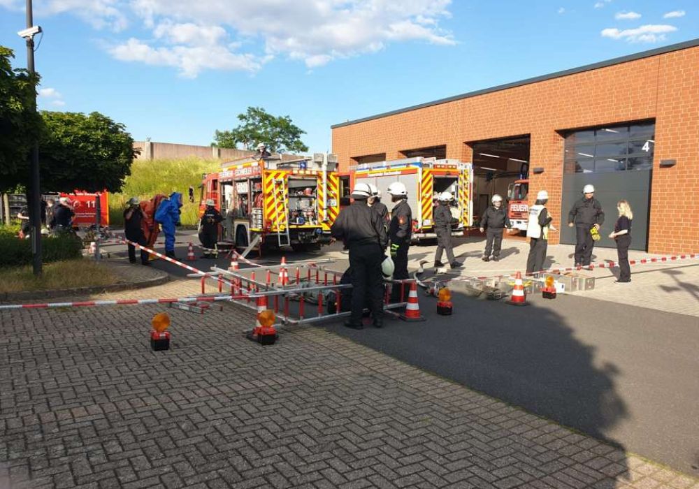 Zweimal im Jahr üben die Löschzüge 11 und 12 gemeinsam bei einer Abschnittsübung besondere Einsatzlagen. Die zurückliegende Übung behandelte eine CBRN-Lage mit einem auslaufenden Stoff (Stoffnummer 1230). Dementsprechend aufwändig gestaltete sich diese Übung.