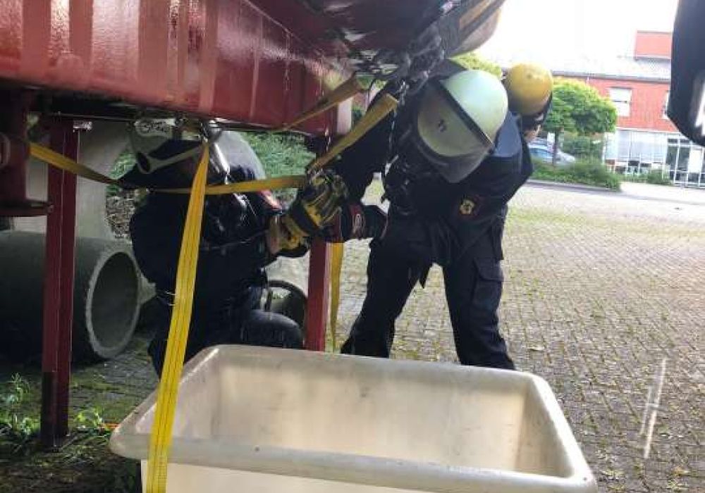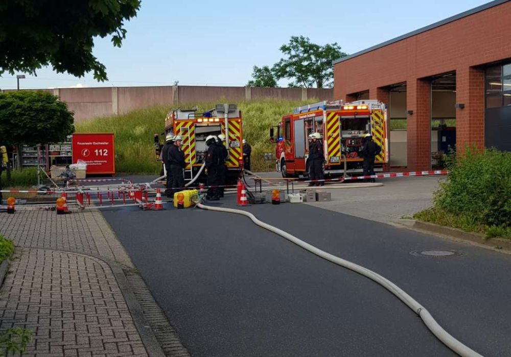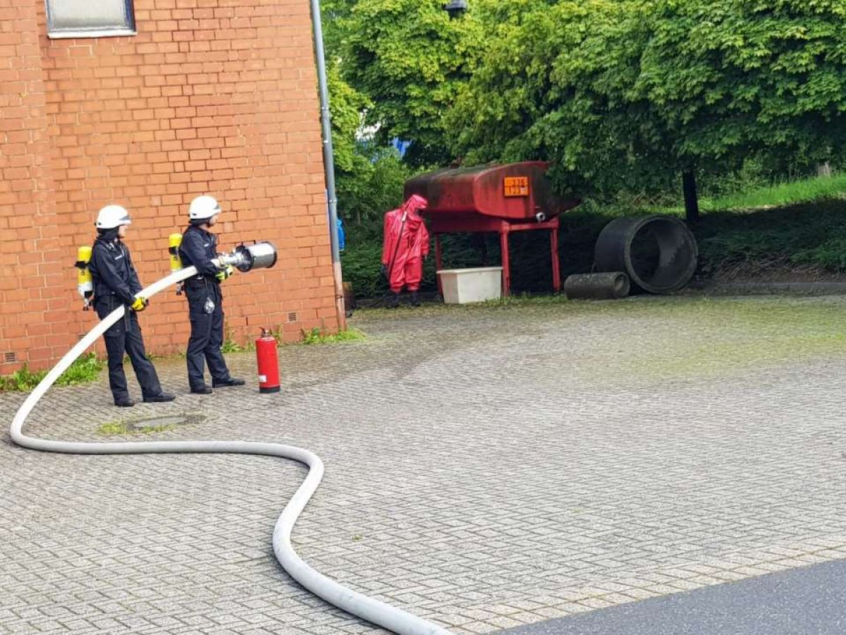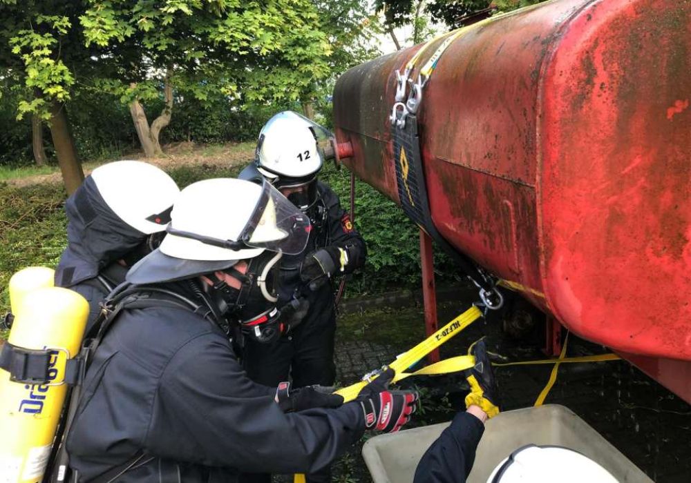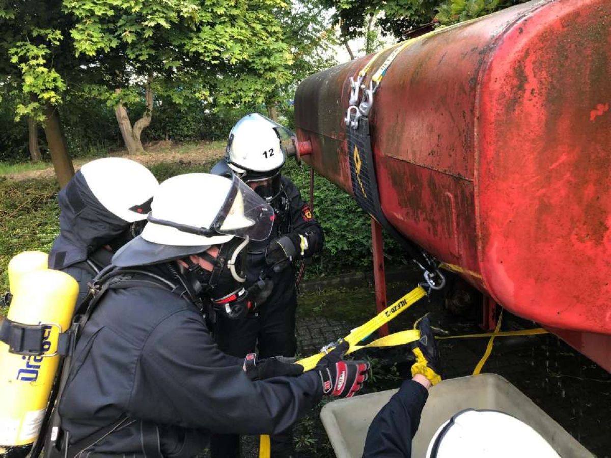 Zweimal im Jahr üben die Löschzüge 11 und 12 gemeinsam bei einer Abschnittsübung besondere Einsatzlagen. Die zurückliegende Übung behandelte eine CBRN-Lage mit einem auslaufenden Stoff (Stoffnummer 1230). Dementsprechend aufwändig gestaltete sich diese Übung.